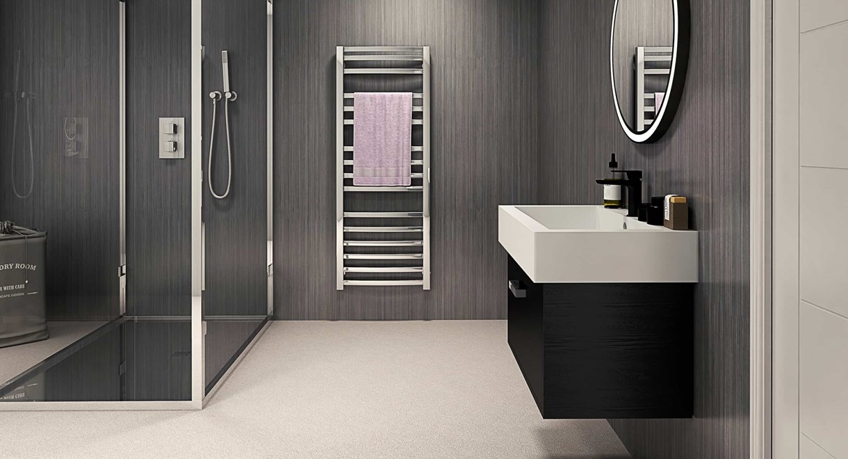 With an elegant linear pattern and combination of black, and silver tones, our Coca Icing wall panel will make a bold statement in your bathroom or shower room.