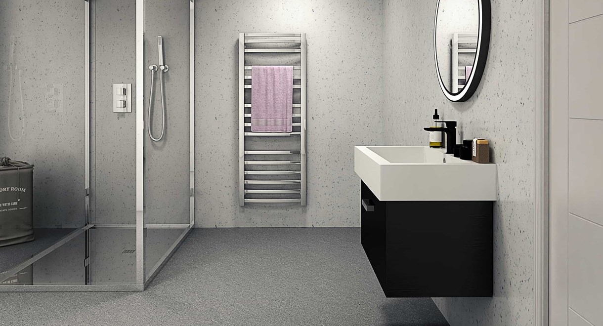 For a bathroom or shower room that shines bright, choose our Snowflake Sparkle wet wall panel. Its light base colour and sparkly pigments will add joy to your room décor.